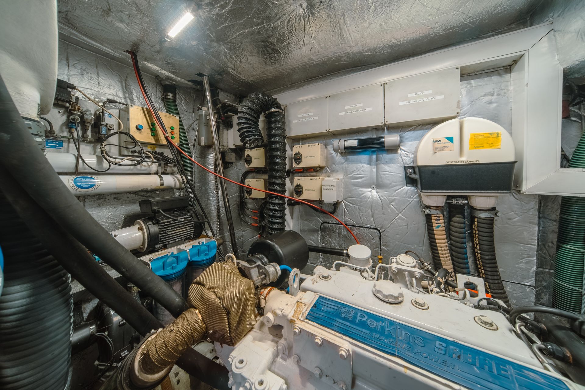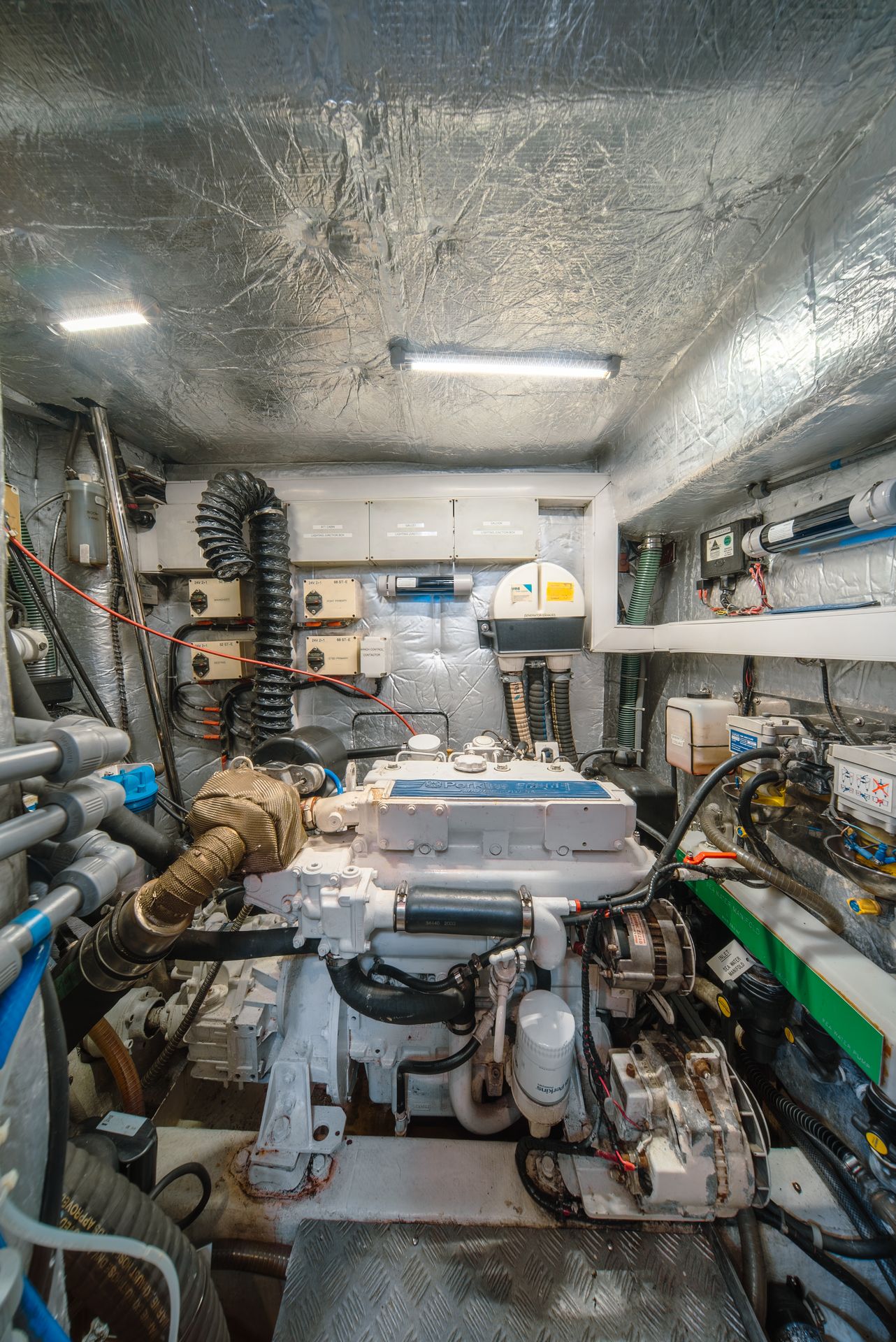 - Stainless steel exhaust manifold on Perkins engine