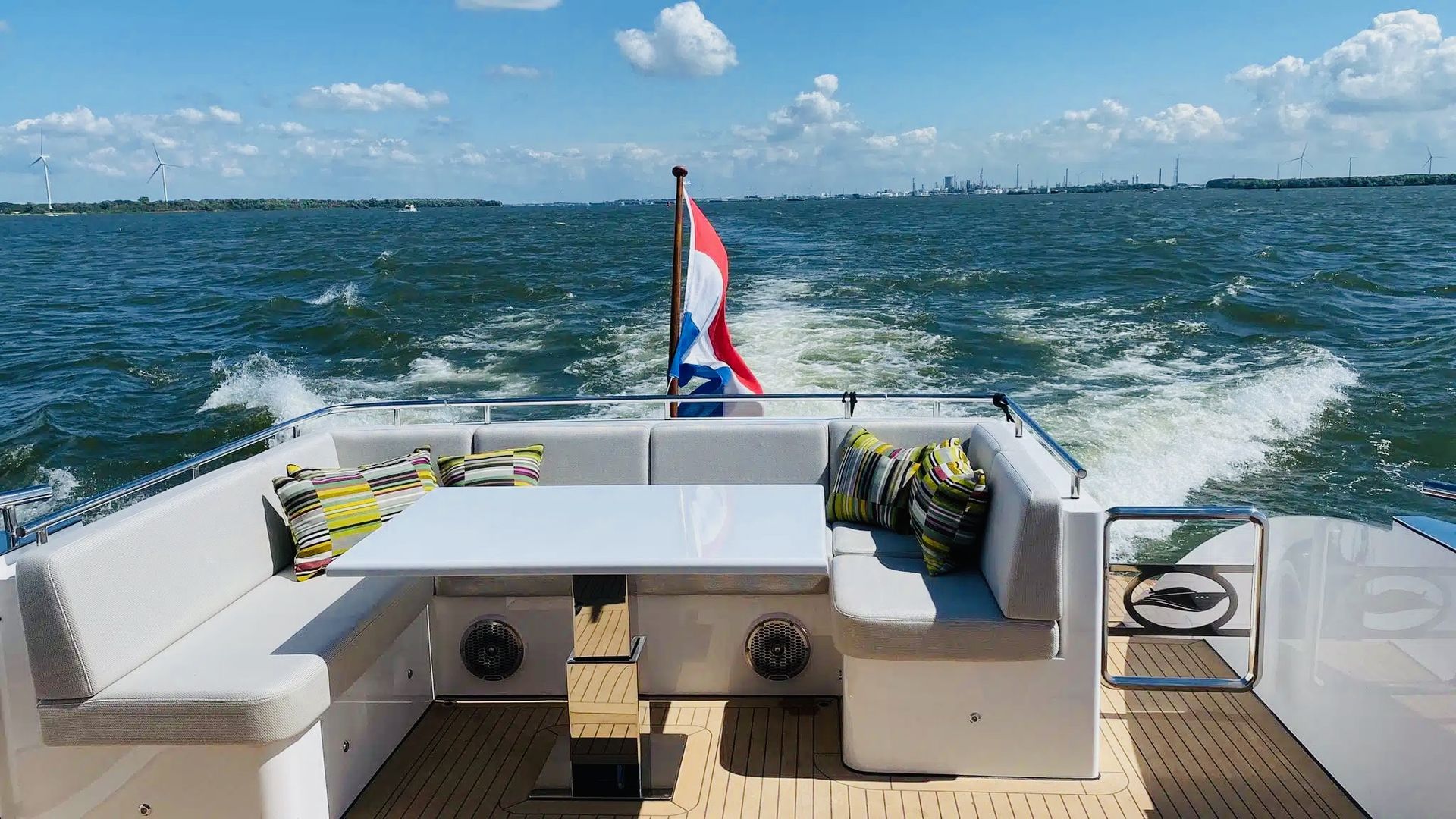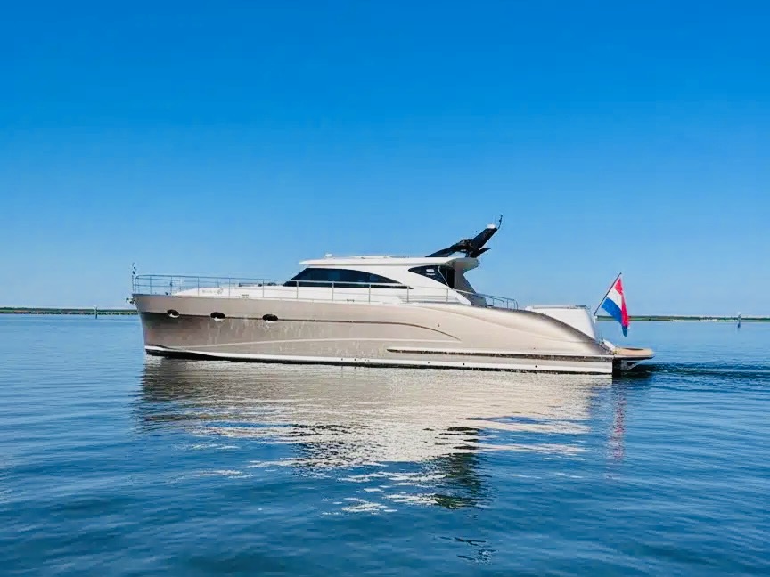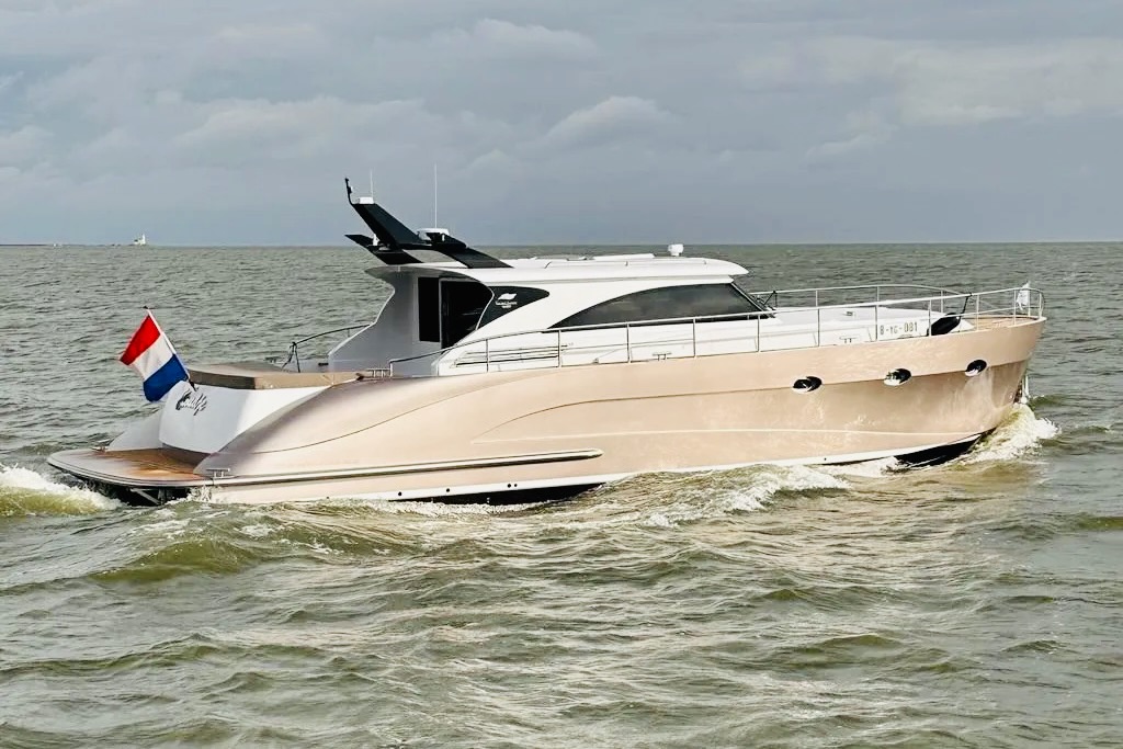 "This Exclusive DeLuxe 1700 is the demonstration yacht of Van der Heijden Yachts in the Netherlands, a shipyard renowned for building Dutch quality yachts at a highly competitive price level. The design blends a contemporary profile with a classic touch, offering timeless elegance while incorporating modern innovations such as the axe bow. Powered by twin 650 hp engines, she delivers impressive performance and handling.